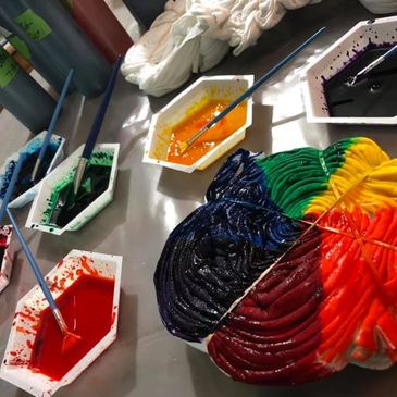 I personally enjoy playing and learning with any and all art mediums. Art is my therapy and the space that I hold for healing and loving intention. I first began playing with sublimation printing and began to imprint my spiritually inspired artwork onto tiles, mugs, metal, wood, canvases, acrylic and anything else I could print on. I then branched out into vinyl cutting to upgrade my t-shirt designs. The summer before the pandemic I taught myself how to tie dye and have grown majorly addicted to making one-of-a-kind wearable art. Ice dyeing was a game changer for me because the process turns everything into a beautiful watercolor with so much vast space for exploration. Reverse Tie Dye starts with a dark textile where the dark color that is not tied is removed and then additional colors are added. The results are by far some of my most favorite creations. I love making designs and mixing colors that emote my love for what makes this world of Creation so special. Art has the power to make the world feel hugged. To do what we love is the greatest blessing.