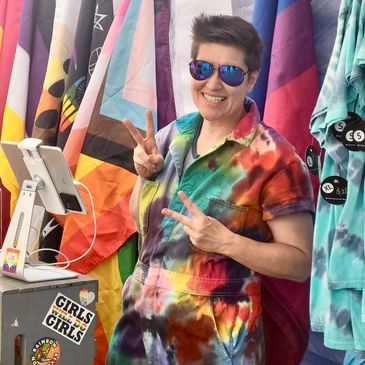 In 2000, I was living in Atlanta, GA working for corporate America and developed thyroid cancer. I left the cubicle world to focus on my health and in 2002 I bought my first heat press and set forth to make a life for myself making art while working in my PJs. Jammeland, as I like to call it. In 2018, after going back to school in my forties, I graduated top of my class with a Business Marketing Management Degree. I began doing Pride festivals to showcase my artistry which supports my fellow queer community. I am rooted in old school customer service and desire to cultivate one-on-one connections that leave everyone feeling happy and valued. I make art that feeds my spirit and circulates the love within my heart; a love that will forever remain authentic and true.